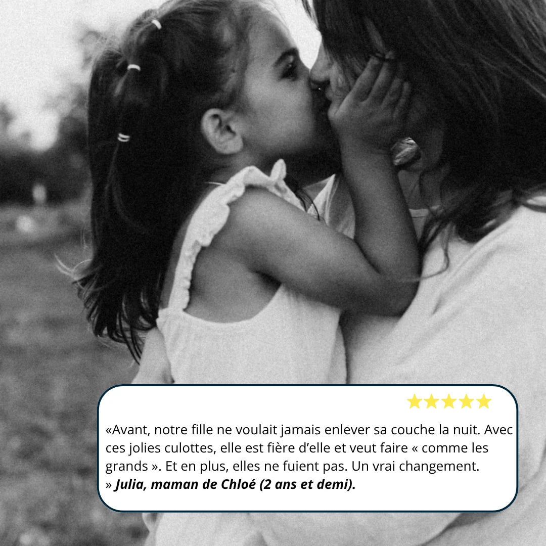 “Mon fils avait encore régulièrement des accidents la nuit, et les couches classiques commençaient à freiner ses progrès. J’ai voulu tester une alternative plus douce, plus proche d’un vrai sous-vêtement, et je suis ravie.Les culottes de nuit Baby&Oak sont douces, confortables et totalement silencieuses. Il les adore car elles ressemblent à des slips de “grands”, et moi je suis rassurée car elles absorbent parfaitement sans fuite.Même en voiture ou lors de siestes, il reste au sec.Le lavage est simple (machine à 60 °C), et elles sèchent vite à l’air libre.En quelques jours, j’ai vu une vraie différence : moins d’accidents, plus d’autonomie et surtout… des nuits plus sereines pour tout le monde.Je recommande à tous les parents qui veulent avancer sans stress.”